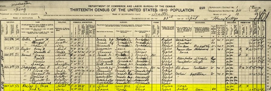 1910 Federal Census, Seattle Ward 13, King, Washington, United States