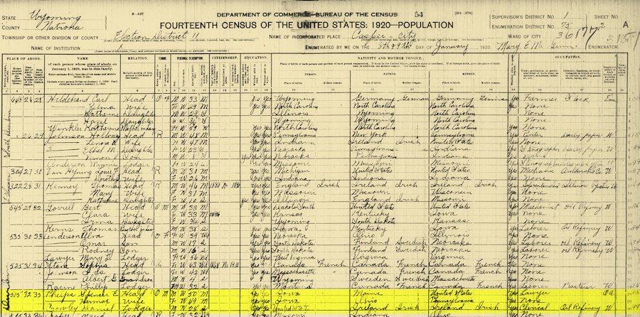 1920 Federal Census, Casper Ward 3, Natrona, Wyoming, United States