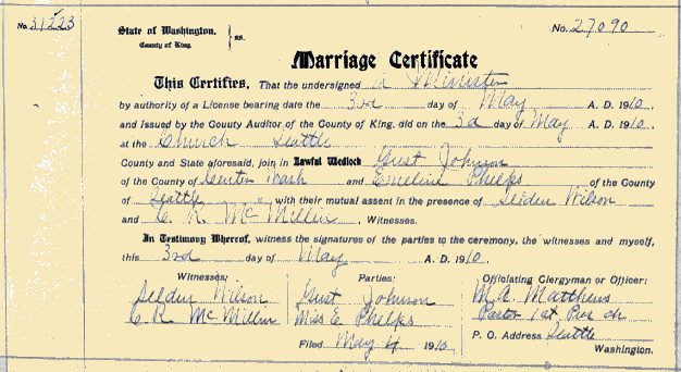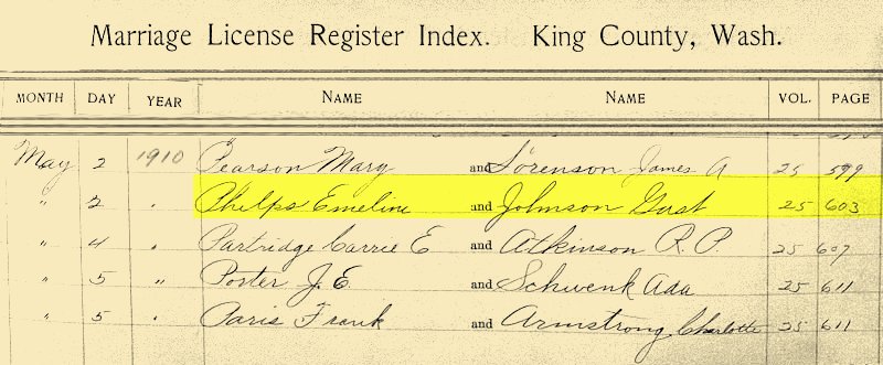 ----Mrs. E. E. (Emaline Eliza) Phelps left Sunday morning for her new home at Ballard, Washington, where she goes to join her son Fred, who is practicing dentistry there. She was accompanied by Mr. and Mrs. Ira P. Houghton, of Neillsville, who will locate at New Whatcom. They all leave many friends in this section who will join the Leader in wishing them health and prosperity in their new home. From the Merrillan Leader, reprinted in the Greenwood, Gleaner 9 May 1902.