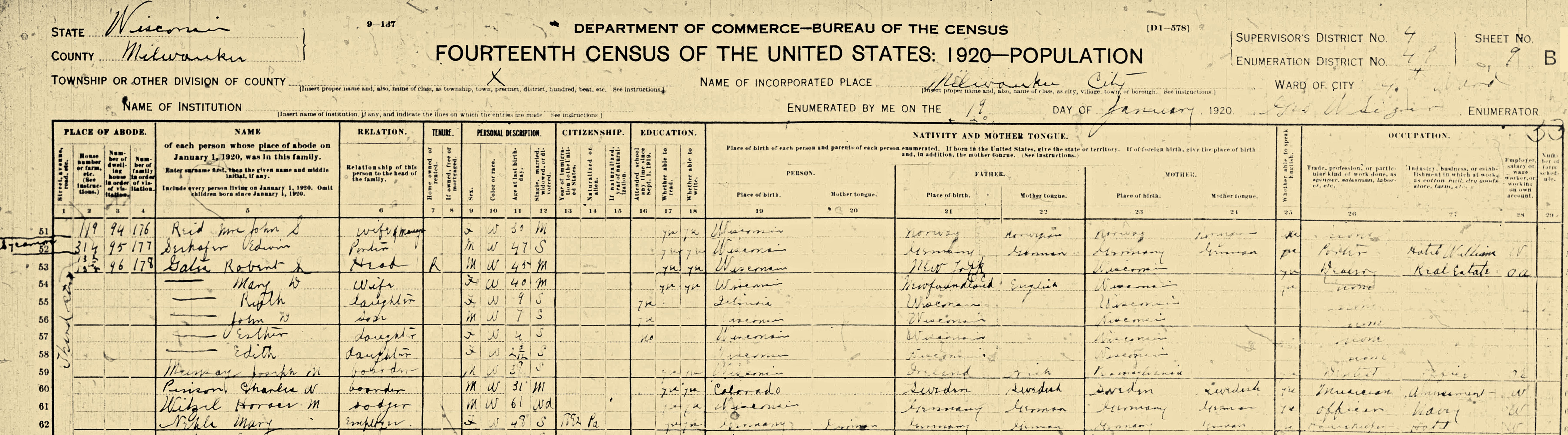 1920 Federal Census, Milwaukee Ward 4, Milwaukee, Wisconsin, United States, 3rd St.