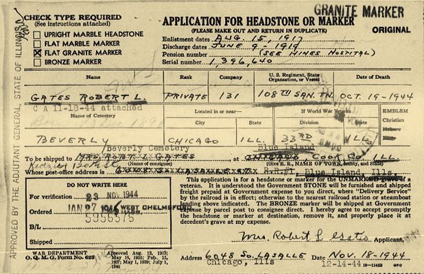 *This grave registration for Robert L. Gates was filed 8 Nov. 1944.