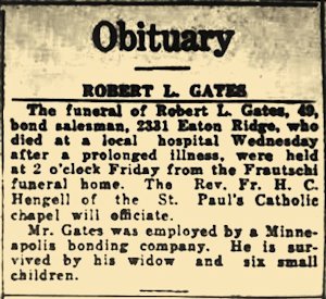 Mr. Gates was employed by a Minneapolis bonding company. He is survived by his