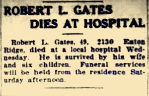 Robert L. Gates, 49, 2130 Eaton Ridge, died at a local hospital Wednesday. He is