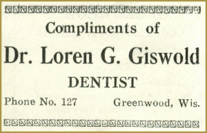 His wife and year and a half old daughter will join him here later. Dr. Giswold comes highly recommended as a first class dentist and we hope Greenwood, will prove to his liking.