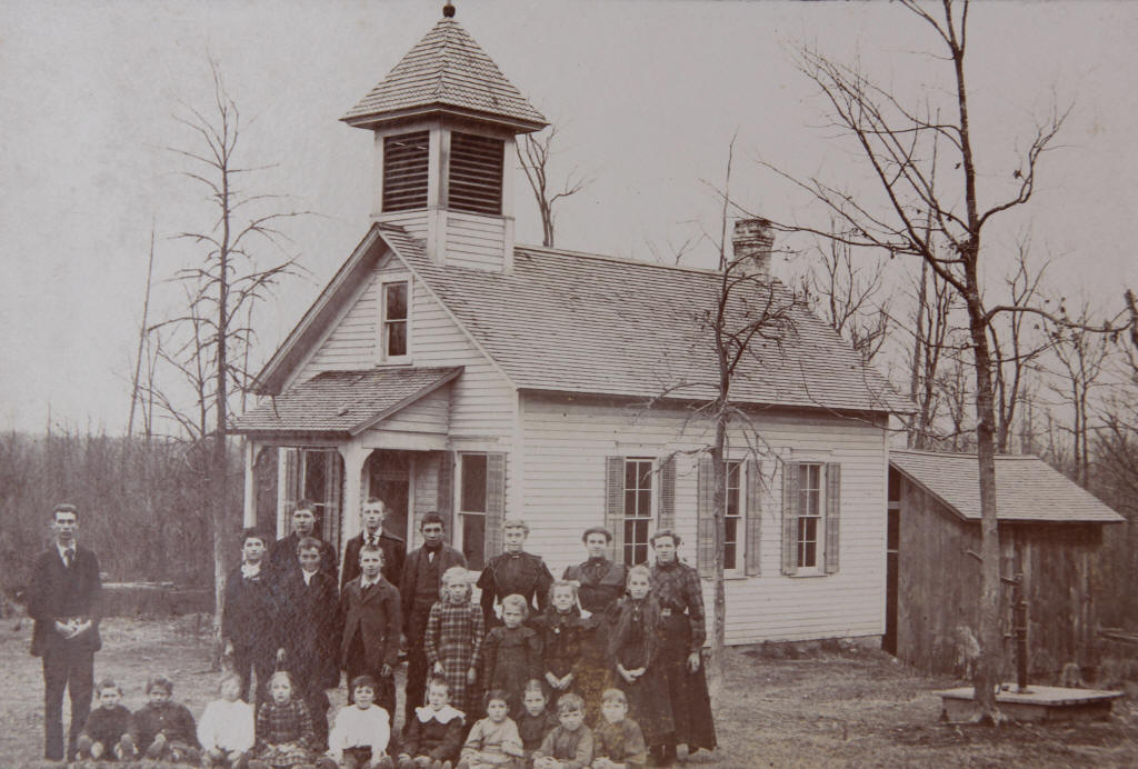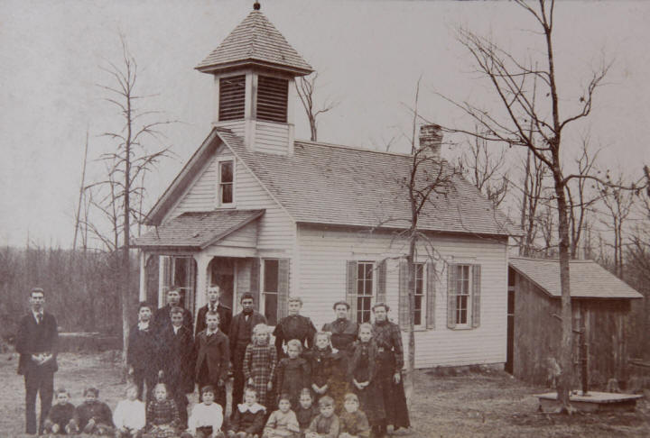 Above is a photo of students at the original Bright School of Green Grove Township, Clark Co., WI in about 1899, before that building burned and was replaced by a red brick building.
