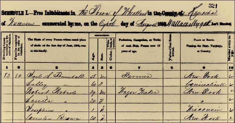 1850 Census; Wheatland, Kenosha, Wisconsin; Household Identifier 84, House # 82; Line # 14