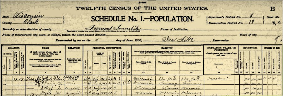 1900 Federal Census, Fremont Township, Clark County, Wisconsin