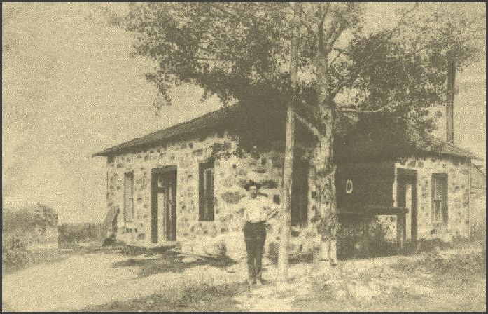 The Dells Dam Cheese Factory pictured above was located on the southeast corner of Sherwood Road and Clark Avenue, one mile east of the Black River. Frank Polaske, once owner-manager of the cheese factory, stood near the building for a photograph, circa 1930. |