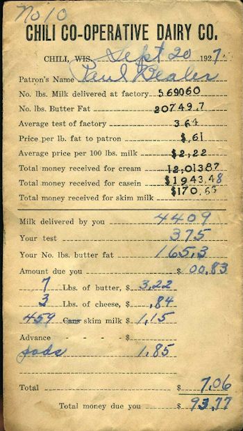 Pictured below is the Chili Co-operative Milk Products Factory, located along Cty. Hwy. "Y".