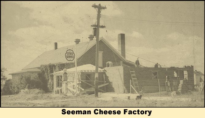 The William Seeman Cheese Factory was located north of Loyal, along County Highway "K". An addition was built on the north side, as is shown in this scene below. Ed Miller was the owner of the business when it was destroyed by a fire, then closed as a factory.