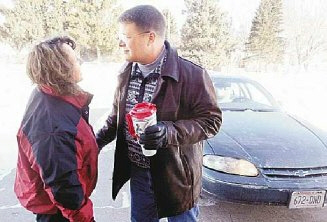 Marshfield News-Herald file photo (below) Todd Olson smiles at his wife Nancy after kissing her goodbye, Saturday, Jan. 31, 2004, at their Loyal home before taking his sons on a skiing trip to Bruce Mound. Olson was killed in an explosion, Sunday, while serving in Iraq.