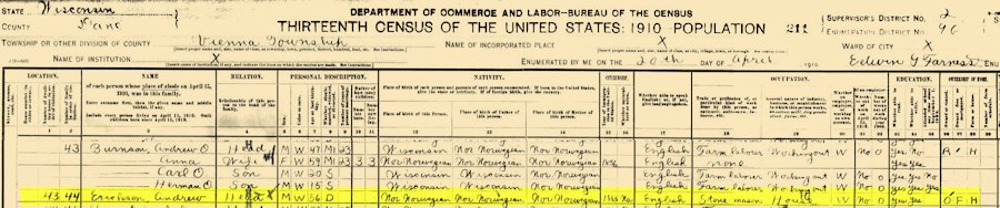 1910 Federal Census, Vienna, Dane, Wisconsin, United States