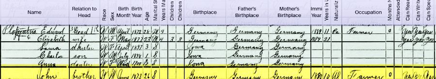 Father's Birthplace Germany; Mother's Birthplace Germany