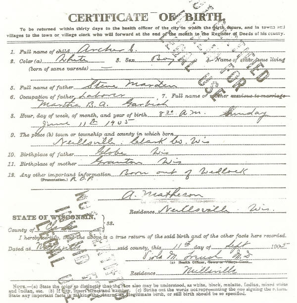 He was born at Neillsville June 11, 1905. He was the only son of Steve and Martha Marden.
