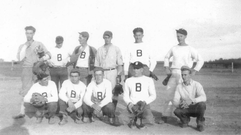 Eighty-eight-year-old Paul Gloudeman of Loyal, WI stopped by to visit this morning and brought me a photo of the Beaver baseball team of the late 1930's. Pictured (from left to right) are, in the front row, Ervin Kollmansberger, George Bloomfield, Harold Kollmansberger, Paul Gloudeman, and Wallace Plaman. In the back row are Roy Pipkorn, Lawrence Walters, unkown, Victor Delo, Allen Luber, and Delmond Johnson.