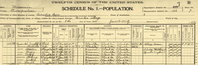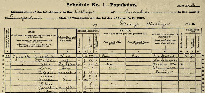 Wisconsin Census, 1905--Arcadia village, Trempealeau, Wisconsin