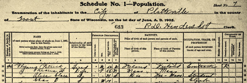 Wisconsin Census, 1905--Platteville city, Grant, Wisconsin