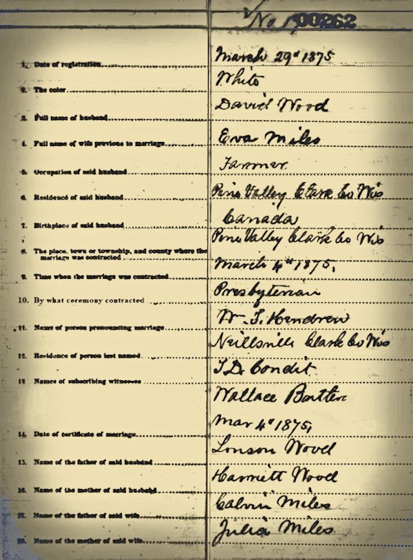 Clark Co., Wis., and Eva Miles, the daughter of Calvin and