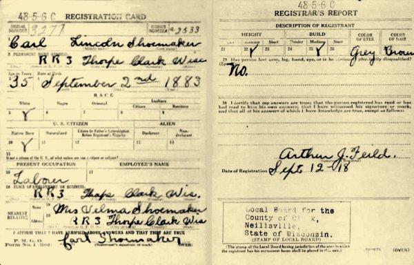 Carl Lincoln Shoemaker--Laborer in Clark County, Wisconsin