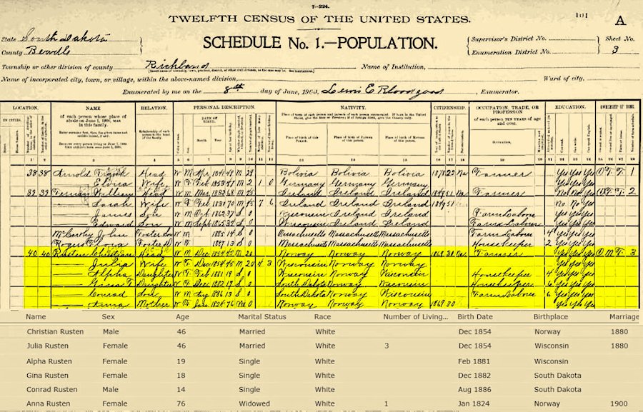 1900 Federal Census, Richland Twp., Beadle County, SD