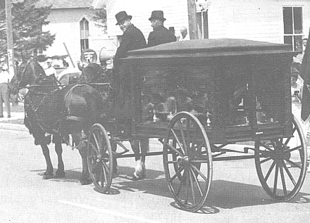 Pictured below is a horse driven hearse with Don Kraut driving. (he was a long time funeral director who served the Mayville and Hoard Townships).