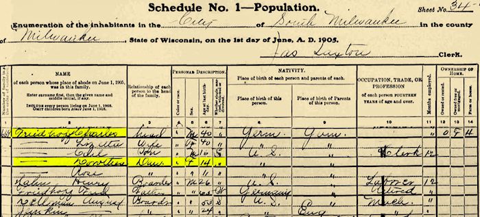 Death: 05 Jul 1938; Event Place Milwaukee, Wisconsin