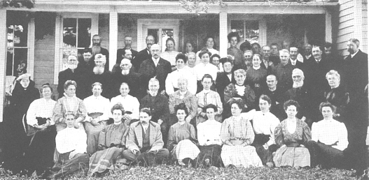 The photo above was taken at an Old settlers' picnic was held at the Borden homestead. They shared each others interests and many of the families had intermarried. Seated is Mrs. Borden wearing the checkered blouse, her husband, and Ebenezer Borden is beside her.