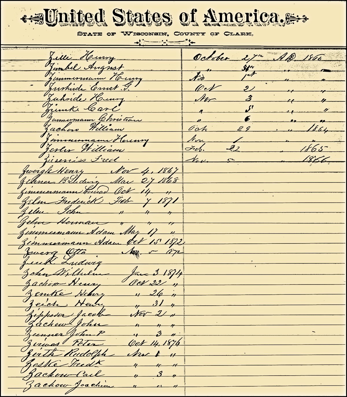 Adam Zimmermann, B Naturalization 17 May 1871 Wisconsin, United States