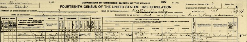 Mertle Mattson Wife Female 36 (1904) Wisconsin