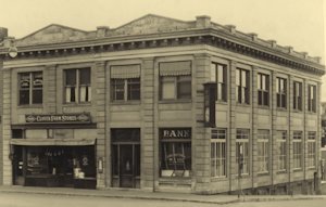 The photos above are from the "Walk Building" on the West side of the street – 400 block of Hewett St.  This building is next door (to the south) of the original First National Bank on the S.W. corner of Hewett and W 5th Street.  Today, it is the Rocking Chair Antique Store.