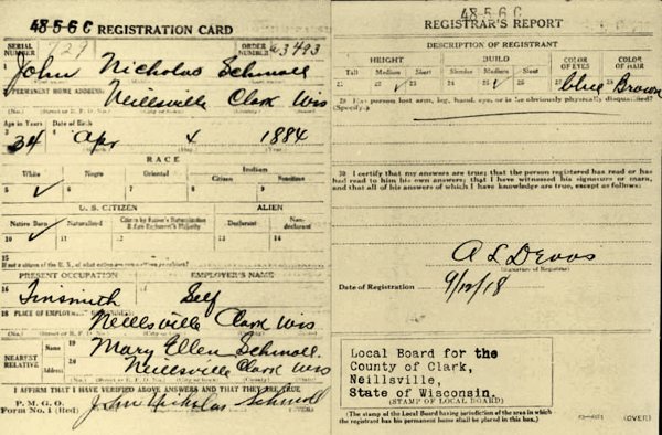 Father's Name: John N. Schmoll, b. Sheboygan, Wis.