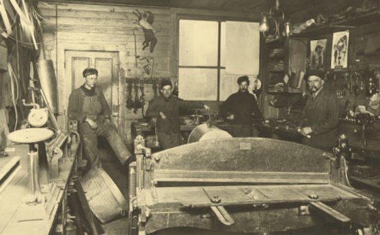 The tinsmith learned his trade, like many other artisans, by serving an apprenticeship of 4 to 6 years with a master tinsmith. Apprenticeships were considered "indentures" and an apprentice would start out first with simply cleaning the shop, polishing tools, keeping the fires lit, filing sharp edges and polishing finished pieces. Later he would trace patterns on sheets and cut them out, then soldering joints, and inserting rivets. Finally, he was allowed to cut out and complete objects.[2][page needed] He learned first to make cake stamps (cookie cutters), pill boxes and other simple items. Next, he formed objects such as milk pails, basins, or cake and pie pans. Later he tackled more complicated pieces such as chandeliers and crooked-spout coffee pots.  After his apprenticeship was completed, he then became a journeyman, not yet being a master smith employing others. Many young tinsmiths took to the road as peddlers or tinkers in an effort to save enough money to open a shop in town."  Wikipedia