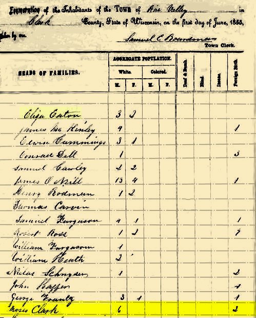 1855 Pine Valley, Clark Co., Wisconsin State Census