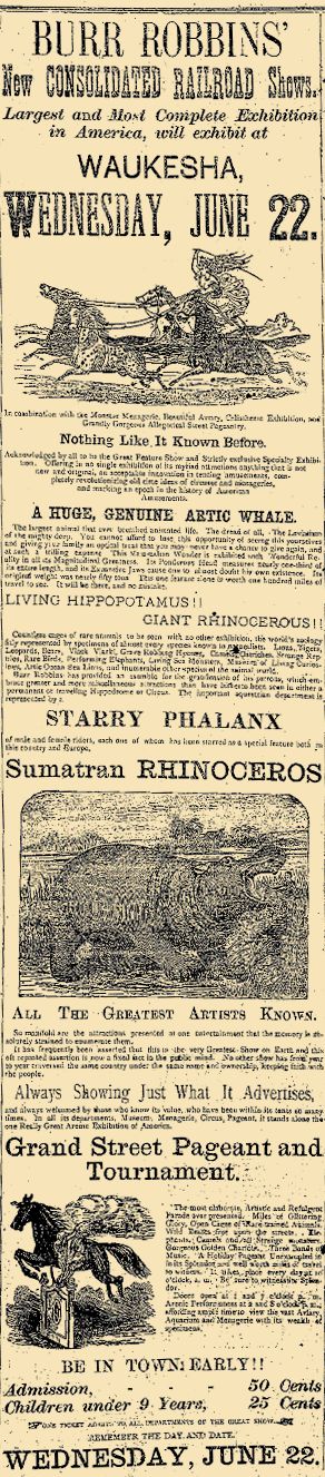 Bio: Burr Robbins' Circus Advertisement (1887)