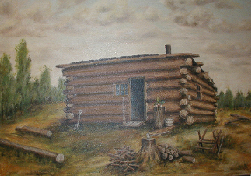 Above is a painting which was done of a cabin which was built by Ephriam Boardman. This was the second home known to have been built by a white settler in what is now Thorp, Clark Co., WI. In the summer and fall of 1872, J. S. Boardman built a log shanty on the southwest quarter of Section 30, Withee Township (20, Range 3 West), and in October of that year his brother, Ephriam, and his family lived with them for three weeks until he got his shanty built. Ephriam's house was built of logs on the site where the old elementary school stands in the city of Thorp.