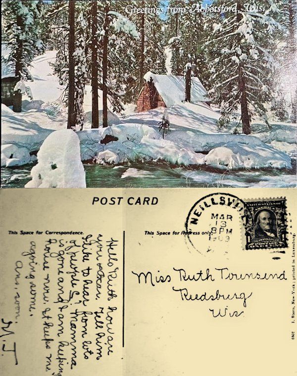 A Christmas Greeting Mailed by "M. J." from Neillsville, Wis. to Miss Ruth Townsend of Reedsburg, Wisconsin