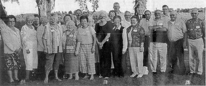 The Stanley High School Class of 1950 had its 55-year class reunion on August 13 at Kutzee’s. Pictured, front row, from left, are Carol Miland Duss, Dolores Skog Price, Avis Schuebel Fellman, Arlene Aumann Lahr, Mavis Foster Johnson, Frances Prozdell Myhre, Donna Van Ert Hedler, Margaret Heiting Abramowicz, Bernice Gruber Kiene, Lloyd Larson, Duane Smasal, and Al Eslinger. Back Row, from left, Virginia Sczypioroski Schunk, Betty Thompson, Benzschawel, Marilyn Leja Lis, Roselyn Janssen Steinmetz, Allan Seidl, Margaret Witt Fisk, Ella Hinke Guthrie, Gerald Van Ert, Richard Sorensen, Tom Woodman, Don William and Glenn Heian, Wanda Mills Hanson is behind Frances Pozdell Myhre.