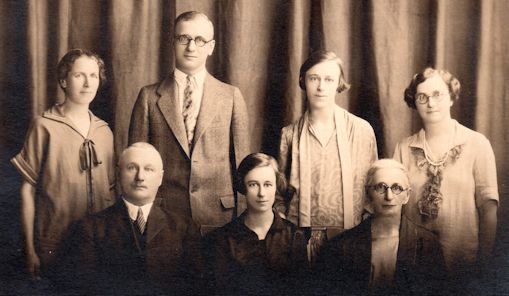 Back row, Anna Block, Charles Block, Margaret Moore, Emma Moore. Front row, Frank Moore, Mildred Moore, Anna Block Moore (nee Baumann) |