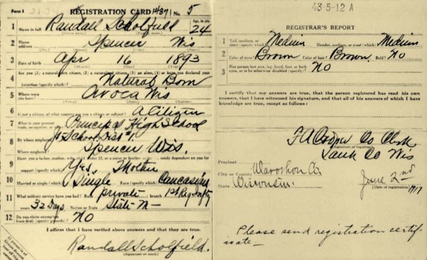 Randall Scholfield, 24 yr. old, Single, Caucasian male, b. 16 Apr 1893 in Avoca,
