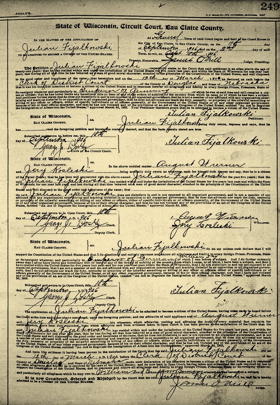 Spouse's Name Victoria Fijalkowski (Parents: Julius Fijalkowski, b. 1866