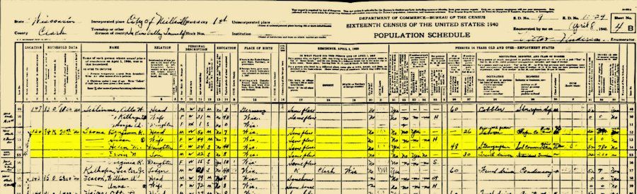 1940 Federal Census, Neillsville, Clark,