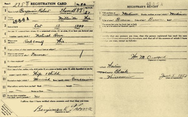 WWI Draft Registration 1917-1918, Clark, Wisconsin, United States