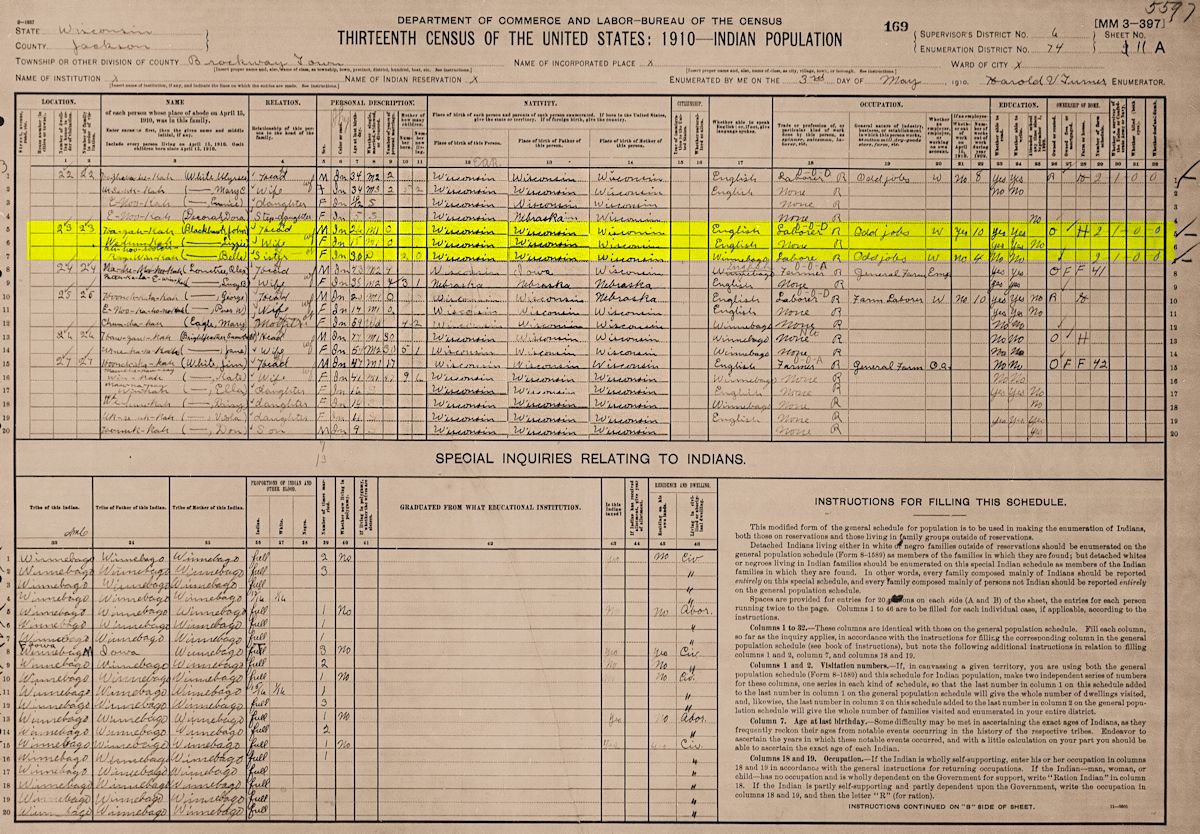 1910 United States Indian Census, Brockway, Jackson, WI