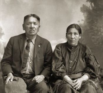 Charles Greencrow, a Nebraska Winnebago and his wife, Belle Blackhawk Monegar Cassiman Greencrow (AwHooSuchRayWinKah). She was the former wife of Arthur Cassiman, and sister of John Blackhawk according to Jackson County Historical Society notes.