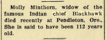Obit: Minthorn, Molly (1820-1932)