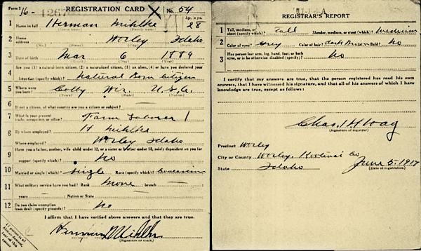 Herman Mihlke was born 6 May 1890 in Colby, Clark County, Wisconsin. He was the son of Herman (1858-1937) and Wilhelmine Hooverjack Mihlke (1858-1933). His wife was Mable Smith Mihlke (1 Jan 1890, Oregon-28 Dec 1955 @ aged 65) . Herman died when he was seventy-four, he died in Plummer, Benewah County, Idaho,12 Oct 1964 and was buried in the Marshall Cemetery, Spokane, Spokane County, Washington.