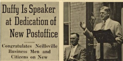 The Mural below the postmaster’s door at the Neillsville Post Office was painted in 1940 by artist John Van Koert and is titled ‘The Choosing of the County Seat.’