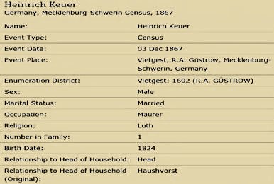 | tf | Keuer, Henry | 7-Apr-1833 | 20-Nov-1906 | Sophia Dickelmann / Elizabeth Ott | Henry & Laura Keuer | ||
