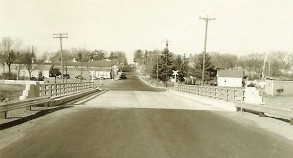 Entering Greenwood, Wisconsin from the South on Hwy. 73 over the new bridge, 1956
