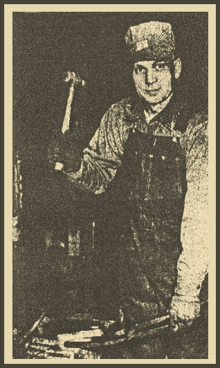 He started his 43 year blacksmith career at the age of 15 and walked 7 miles each day to and from work and his home, 3 ½ miles west of Neillsville, Wis. After two years he saved enough to purchase a bicycle.
